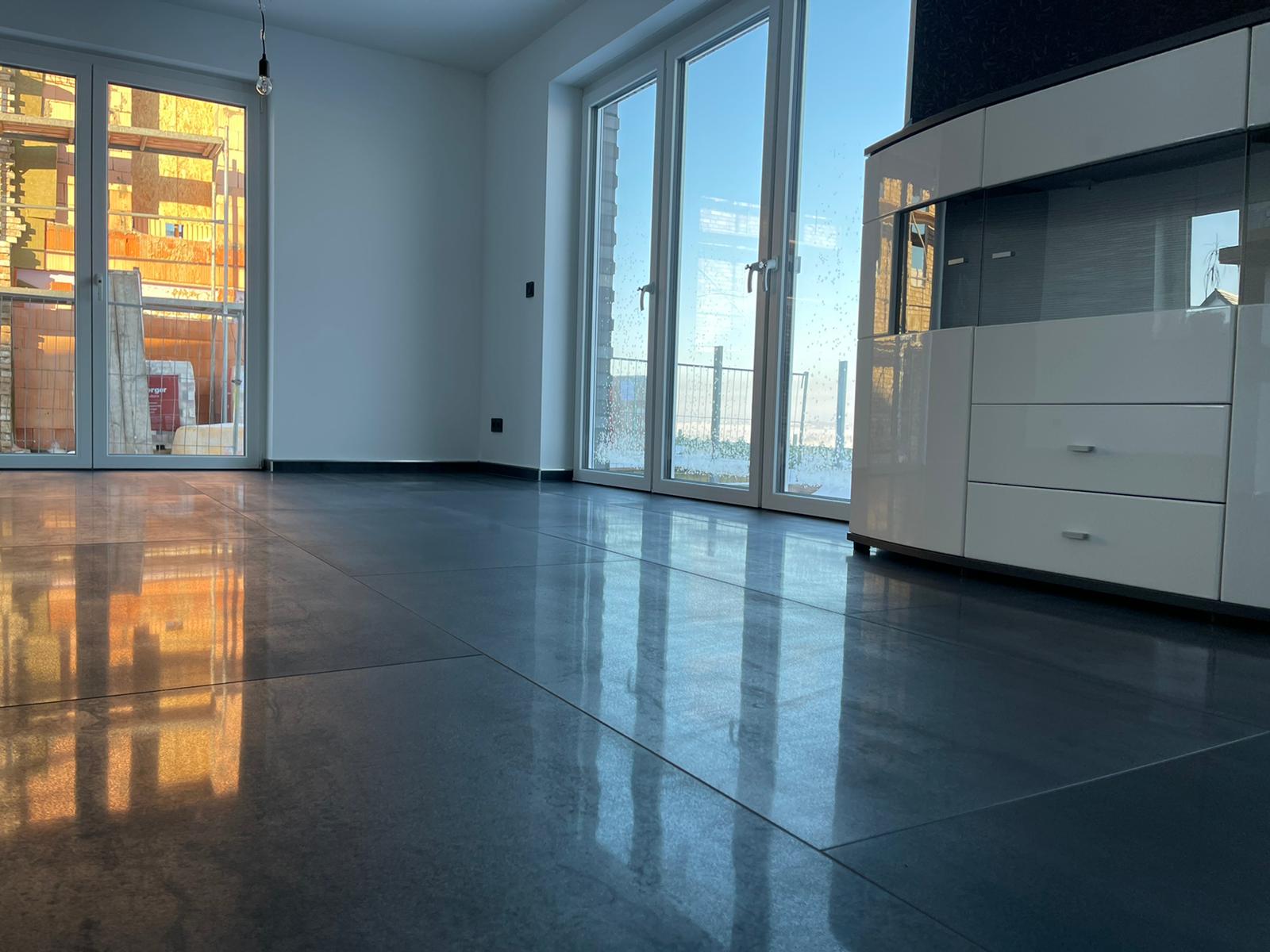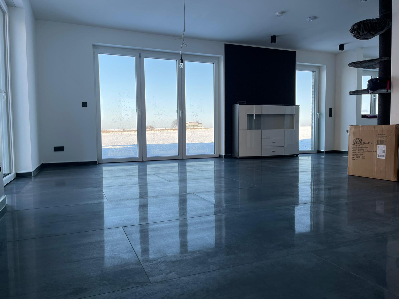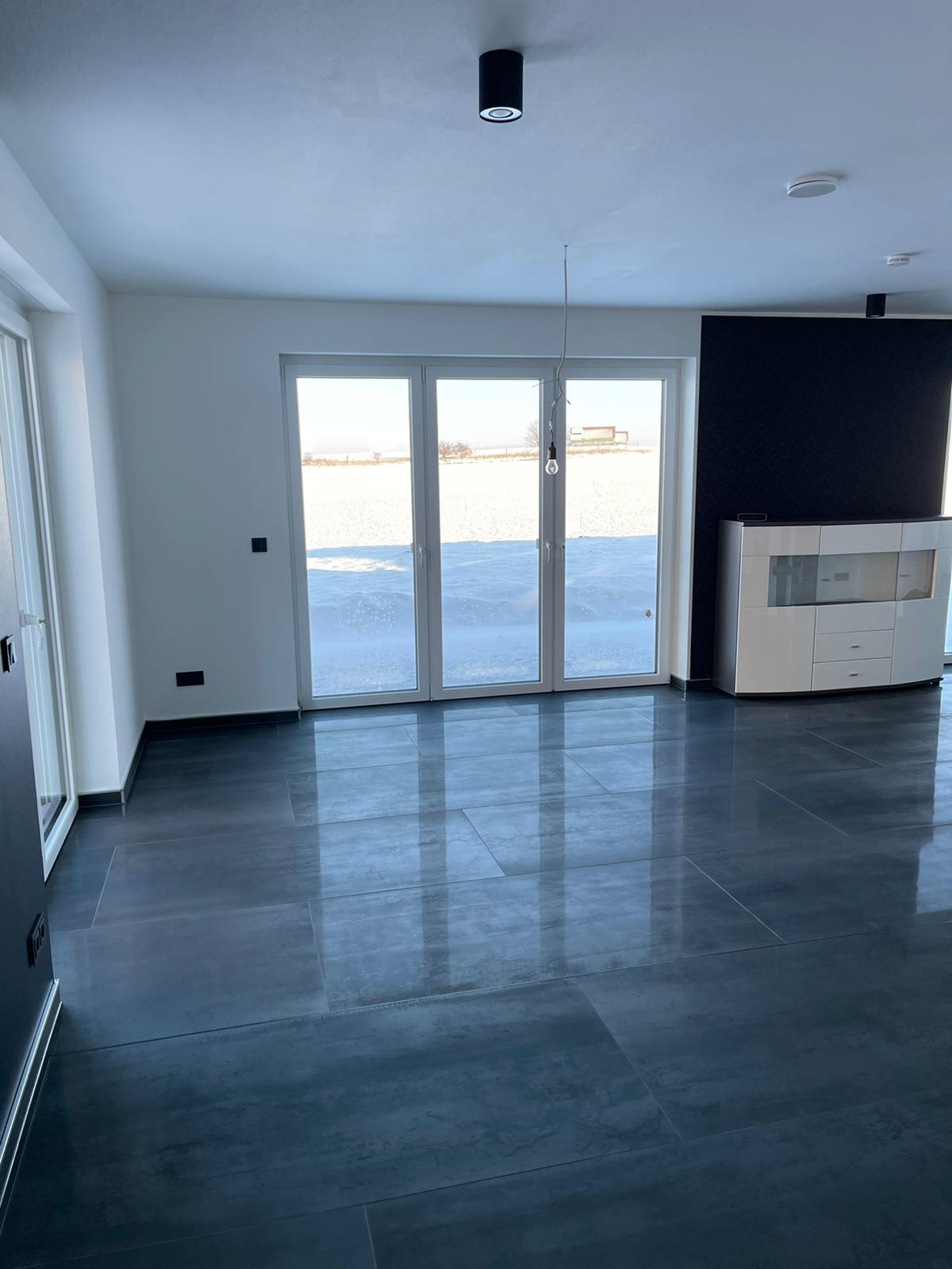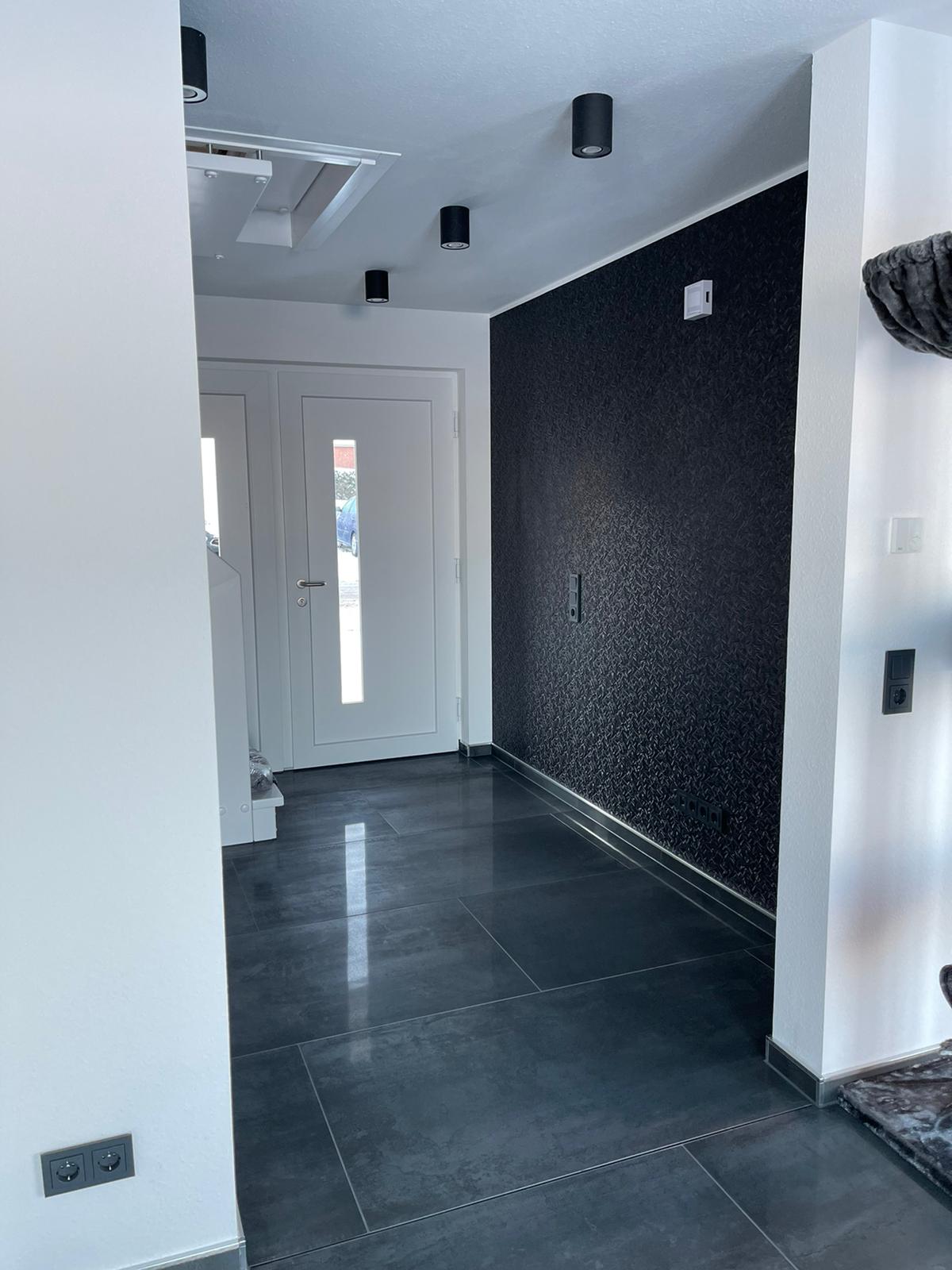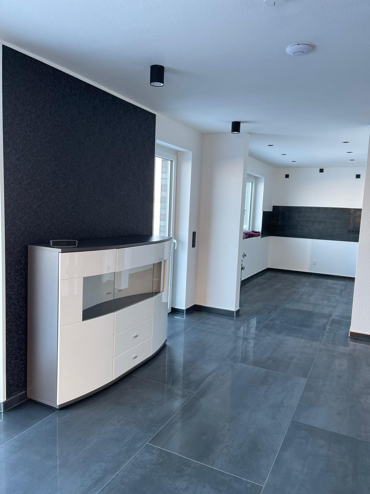 Für einen Privatkunden haben wir Großformat- Fliesen im kompletten Erdgeschoss mit Marazzi 150*75 cm Feinsteinzeug verlegt.