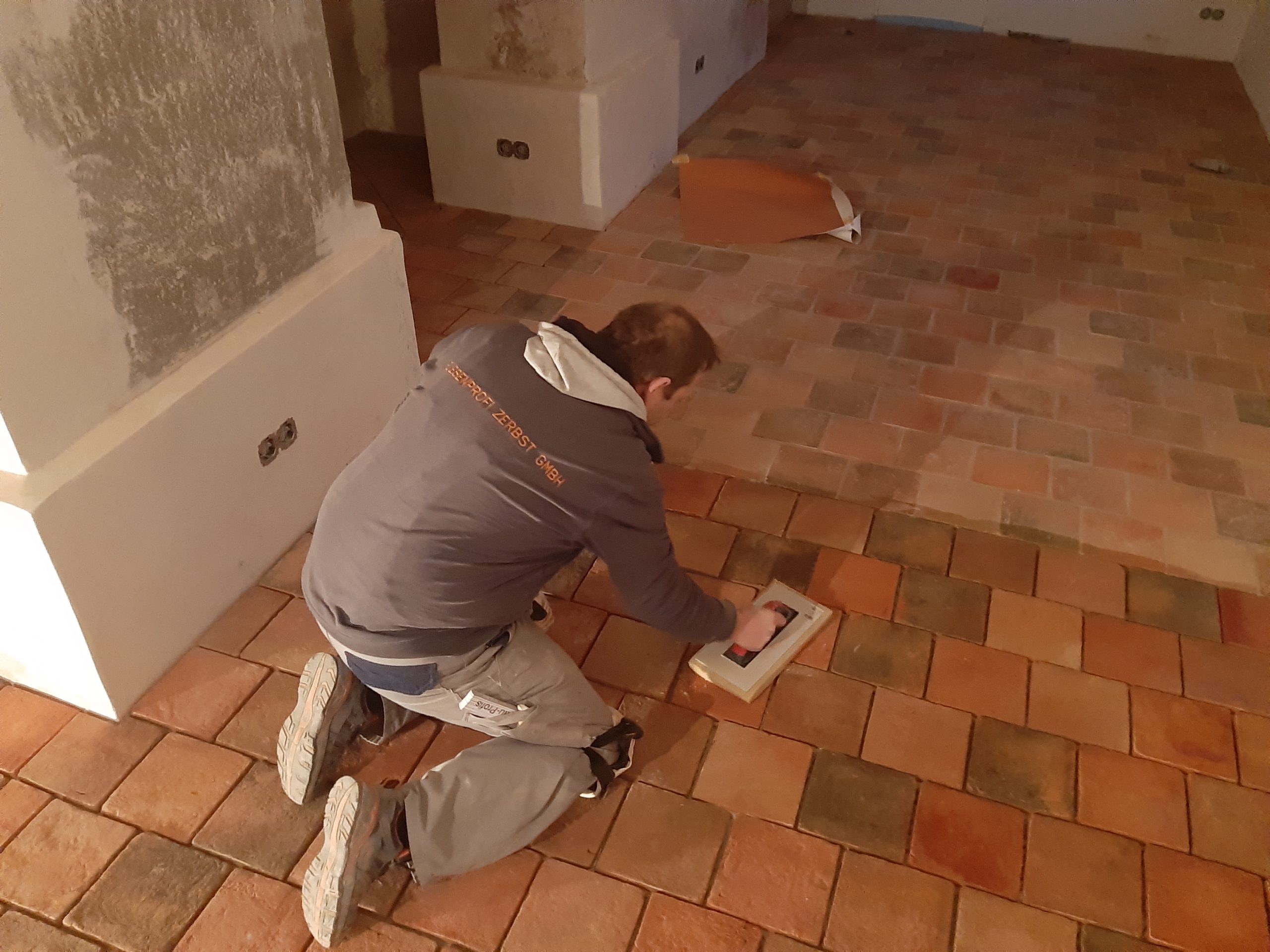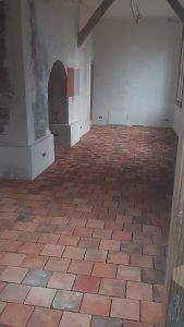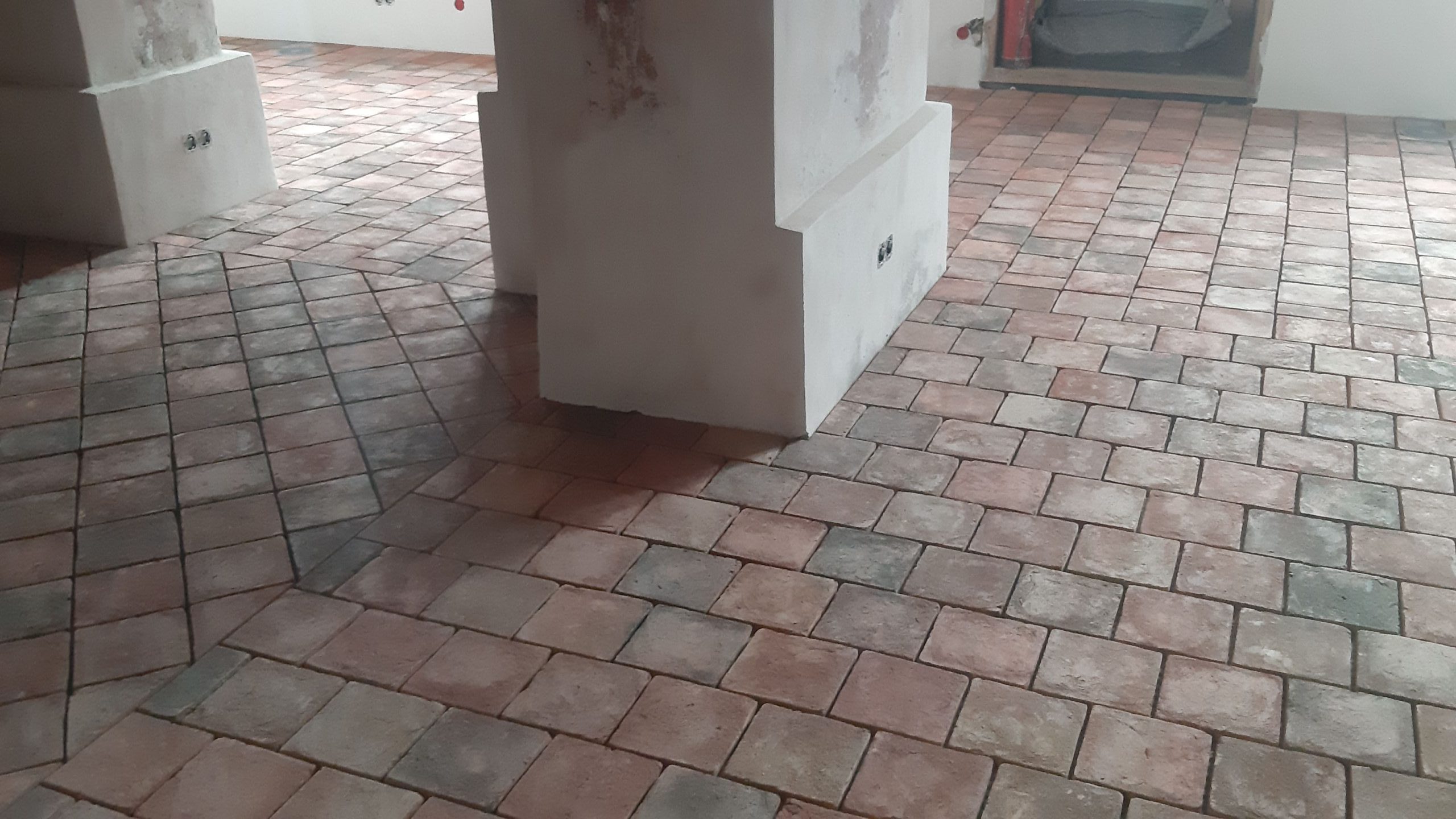 - Fußbodenplatten 22*22*2 cm Cotto Barbetti in mehreren Räumen, Gesamtfläche von 120m²