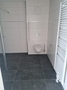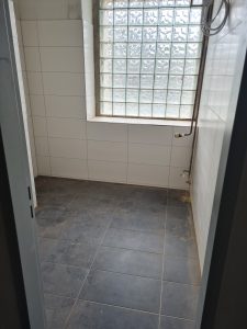 Sanierung der Sozialräume Baustart August 2021 35 m² Bodenfliesen in 30×60 cm 140 m² Wandfliesen in 30*60 cm Bauchemie Sopro Bauchemie Fliesenmaterial: Raab Karcher